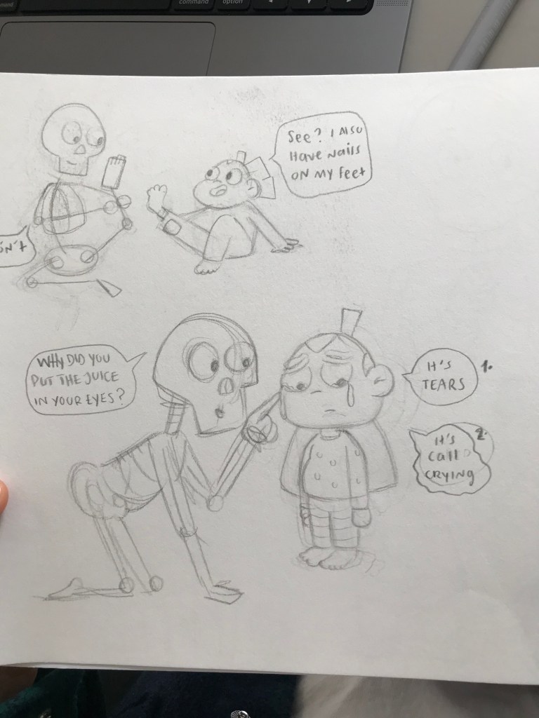 Here are some early sketches of Mija, Toque, and Dad. Sketching helps me a lot to develop ideas and put everything I have in my head onto paper (very quickly).