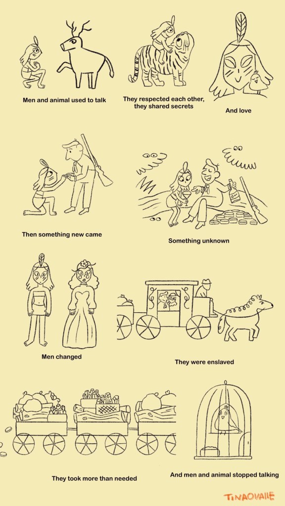 It´s a story about invasions, colonialism, capitalism, resource exploitation, animal-human relations, then change, adaptation, and appropriation.