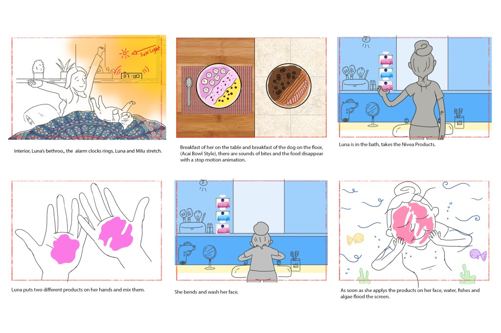 I was commissioned to create the story and storyboard for a TV commercial for a new set of skin care products from NIVEA